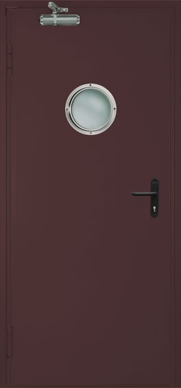 Однопольная противопожарная дверь c круглым стеклом (RAL 8017)